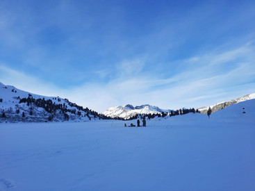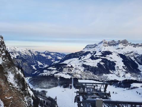 Kurz nach 8 Uhr parkierten wir unser Auto bei der Talstation der Titlis Bergbahnen, lösten unser Ticket und gondelten die wunderschön verschneite Landschaft hoch. Via Trübsee gings hoch zum Jochstock und von dort aus mit der Sesselbahn mit Sitzheizung (kein Witz!) runter zur Engstlenalp. Einen 10 minütigen Schneeschuhmarsch später standen wir endlich auf dem zugefrorenen Engstlensee. Es waren an diesem Tag knapp 20 Eisfischer*innen anwesend, was mich doch recht erstaunte. In den vergangenen Jahren war ich oft ganz alleine auf dem See.
