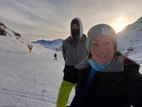 Danach war wieder ich an der Reihe. In einem Loch hatte ich einen 15 cm langen Köderfisch in der Schwebe abgelegt und plötzlich krümmte sich die Rute! Anhieb und los gings. Nach knackigem Drill sah ich den Fisch unter dem Eisloch - mindestens so gross wenn nicht noch ein gutes Stück grösser als der Letzte. Doch leider verhakte sich ein Angel am unteren Ende des Eislochs und nach wenigen Augenblicken konnte sich der schöne Fisch befreien und verschwand zurück in der Tiefe. Schade! Kurze Zeit später packten wir unsere Sachen zusammen und machten uns auf den Rückweg, wo wir sogar noch kurz die Sonne sahen (sie schien den ganzen Tag über, allerdings befand sich der See die meiste Zeit über im Schatten).