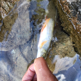 Am Nachmittag heisst es dann erneut zusammenpacken. Es wartet eine kurze Autofahrt über einen weiteren Alpenpass, bevor das letzte Bergsee-Ziel meines Kurztrips vor mir liegt. Die Fischerei am wunderschönen See ist sehr schön, doch auch anspruchsvoll. Mit der Trockenfliege kann ich dann einige #Saiblinge fangen - Fischart Nummer vier! Die grösseren Exemplare kann ich zwar vereinzelt beobachten, doch überlisten kann ich keinen. Stattdessen beisst kurz vor dem Dunkelwerden noch eine schön gezeichnete Bachforelle den Köder. Ein perfekter Schluss für meinen Trip, nun wartet nur noch eine dreistündige Heimfahrt auf mich. Genug Zeit, um die nächsten Bündnerland-Pläne zu schmieden...