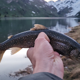 Nur gut vier Stunden später klingelte mich dieser aus dem Schlaf. Um vier Uhr früh fuhr ich die letzten Kilometer hoch zur #Engstlenalp. Um fünf Uhr stand ich am inzwischen komplett eisfreien und spiegelglatten #Engstlensee. Bereits der zweite Wurf brachte den ersten Fisch - und es sollte so weiter gehen. Die Fischaktivität war immens und ich hätte schon nach einer halben Stunde wieder nach Hause gehen können. Nach vier #Namaycush in der Tasche wechselte ich daher meinen Köder zu einem XXL Gummifisch. Um sieben Uhr hatte ich dann alle sechs Fische beisammen - leider heute ohne Grossfisch, obwohl ich zwei ü50er Nachläufer hatte.