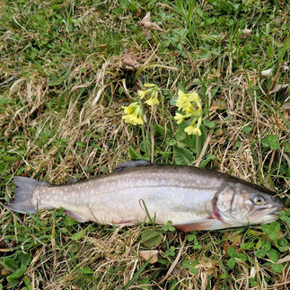 Olivia und ich ignorierten aber die steigenden Regenbögler und versuchten unser Glück eine Etage tiefer, um die hübschen #Saiblinge ans Band zu kriegen. Dies gelang uns recht gut - von 9 gefangenen Fischen waren 6 Saiblinge, darunter sogar drei zwischen 38 und 40 Zentimeter. Wie immer war es sehr kurzweilig am #Sitysee und nach eineinhalb Stunden machten wir uns bereits wieder auf den Rückweg.